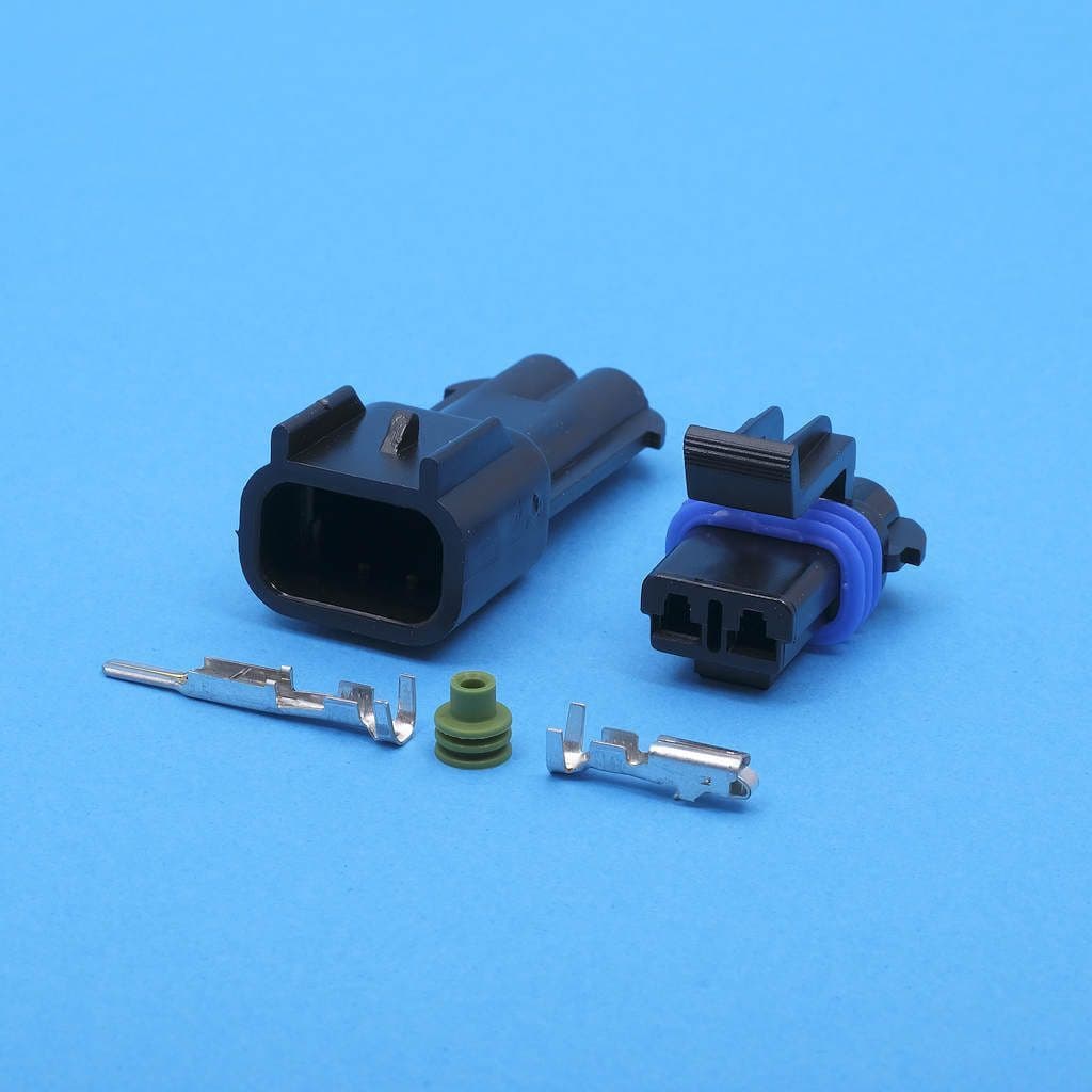 Supplied with 2 female, 2 male terminals and 4 green wire seals.